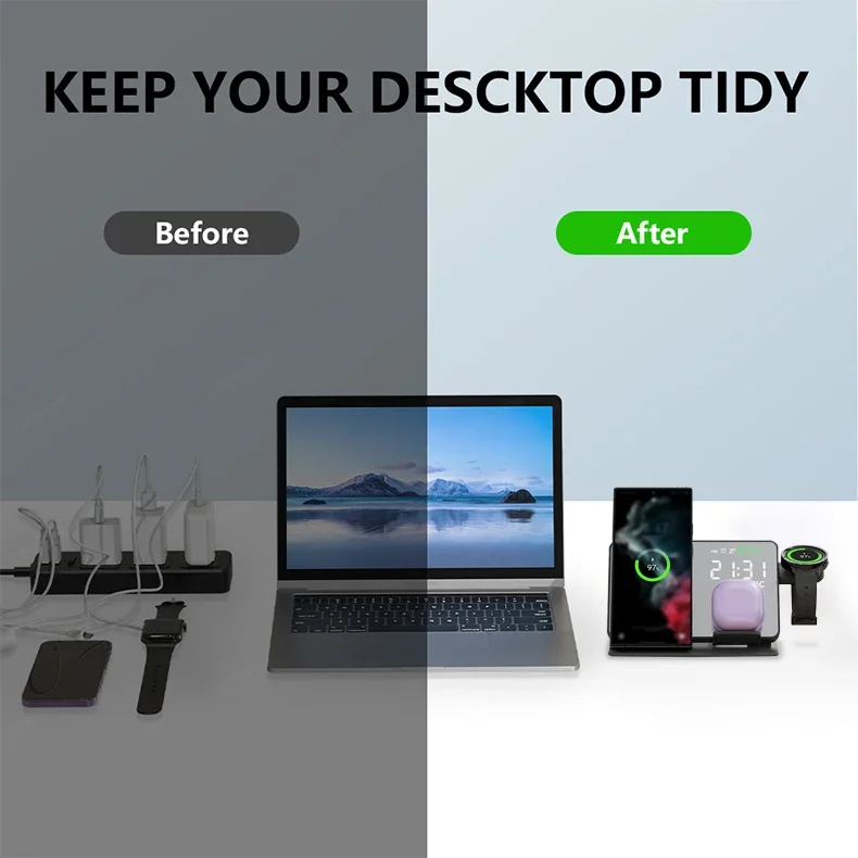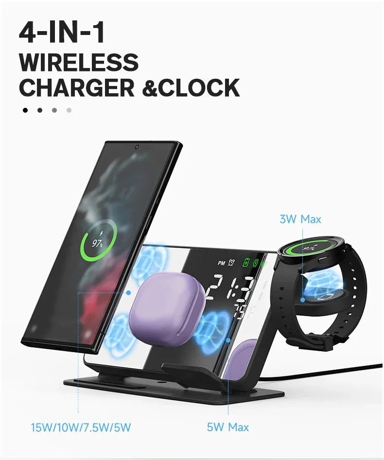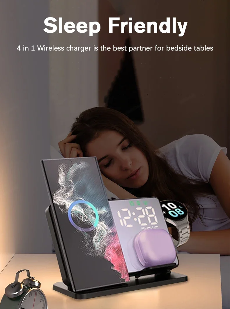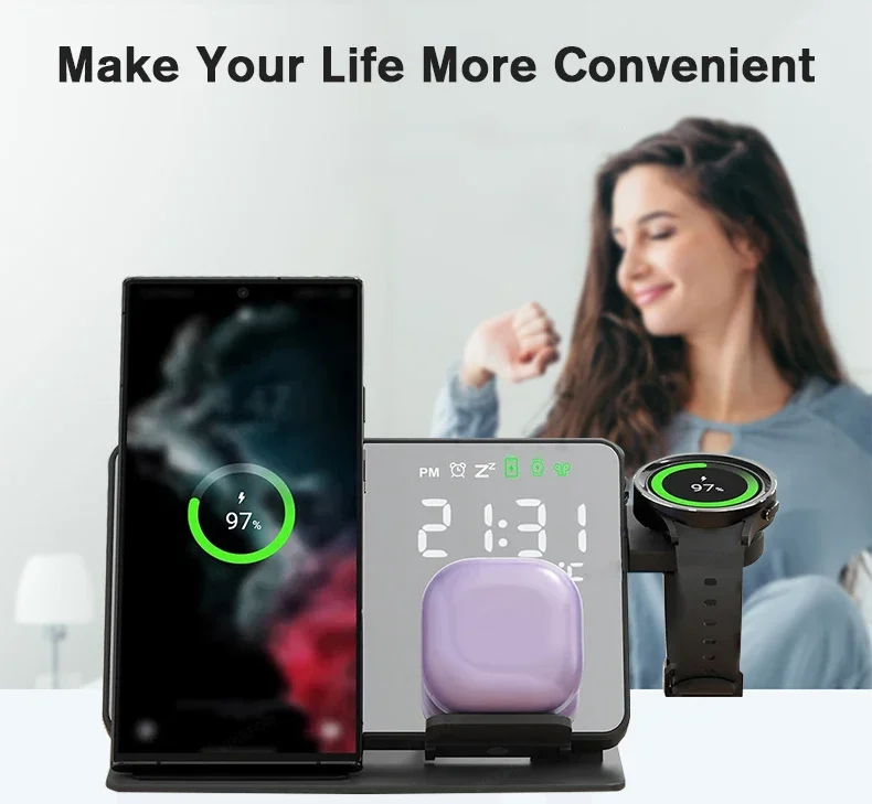 Carregador sem fio 3 em 1 para Samsung Galaxy Watch 4 5 Pro Estação de carregamento rápido para Galaxy S23 S22 S21 Alarm Clock Chargers Stand