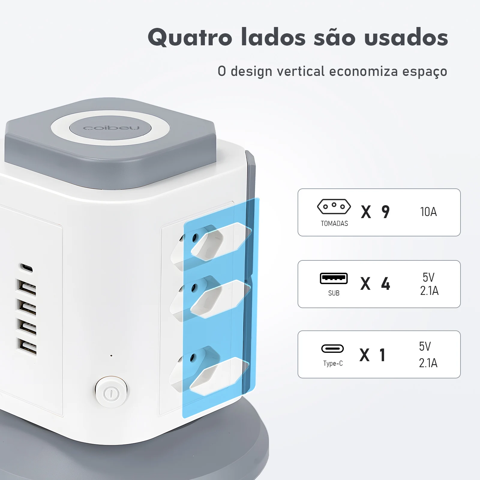 Conveniência Total: Espaçamento amplo entre tomadas (8.4cm) para plugues grandes sem interferência.