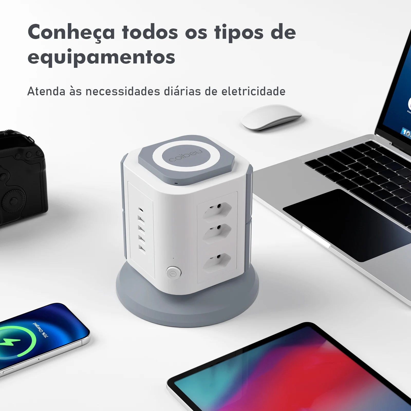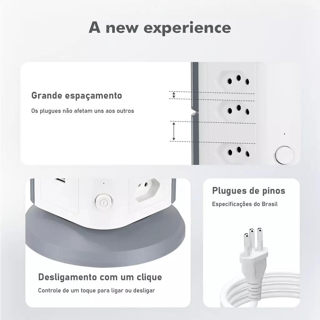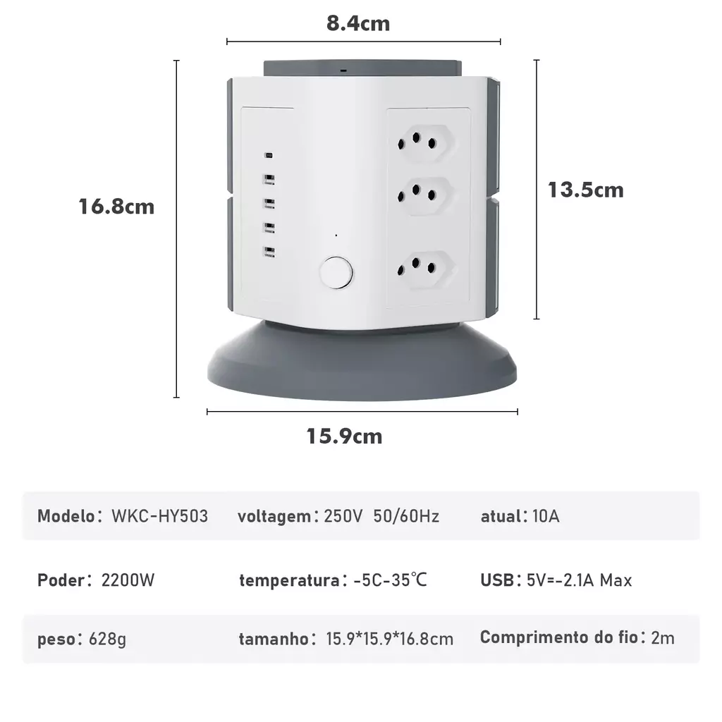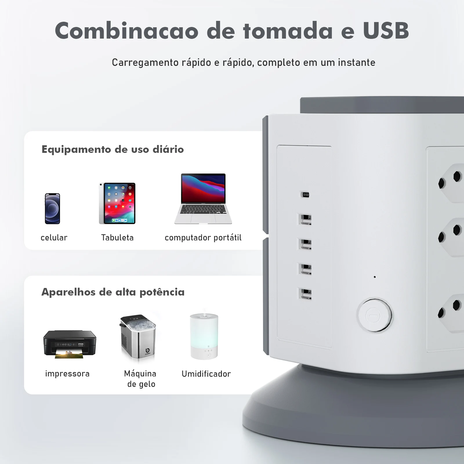 Universalidade: Compatível com todos os dispositivos (250V) e design moderno para ambientes residenciais ou profissionais.