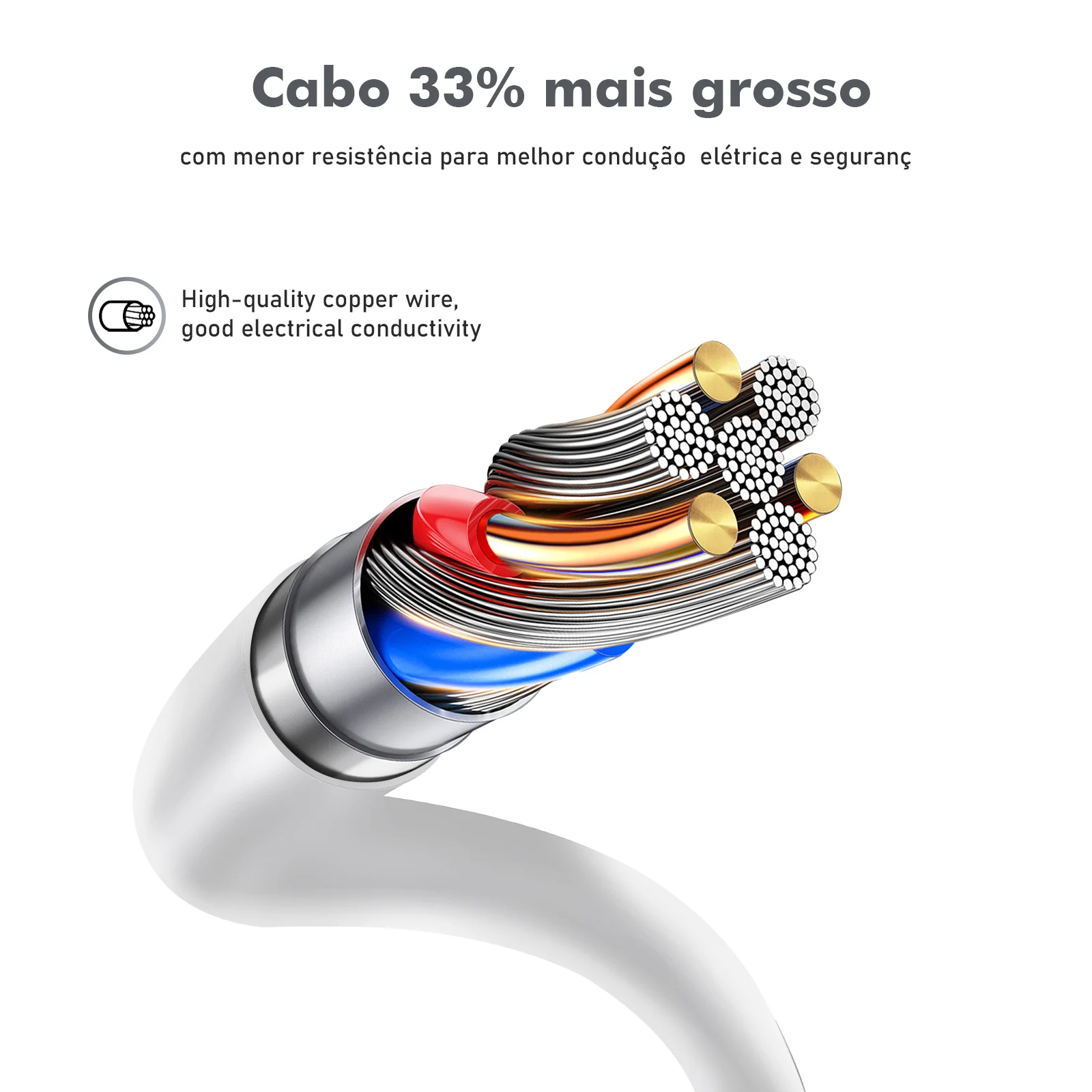 Resistência Comprovada: Material PC de alta temperatura (-5°C a 35°C) e cabo reforçado para uso prolongado.